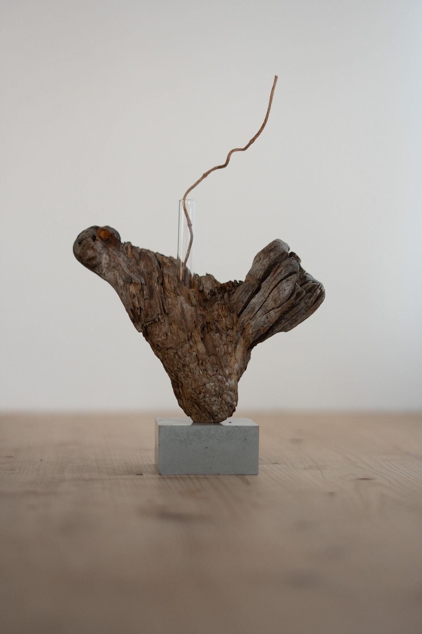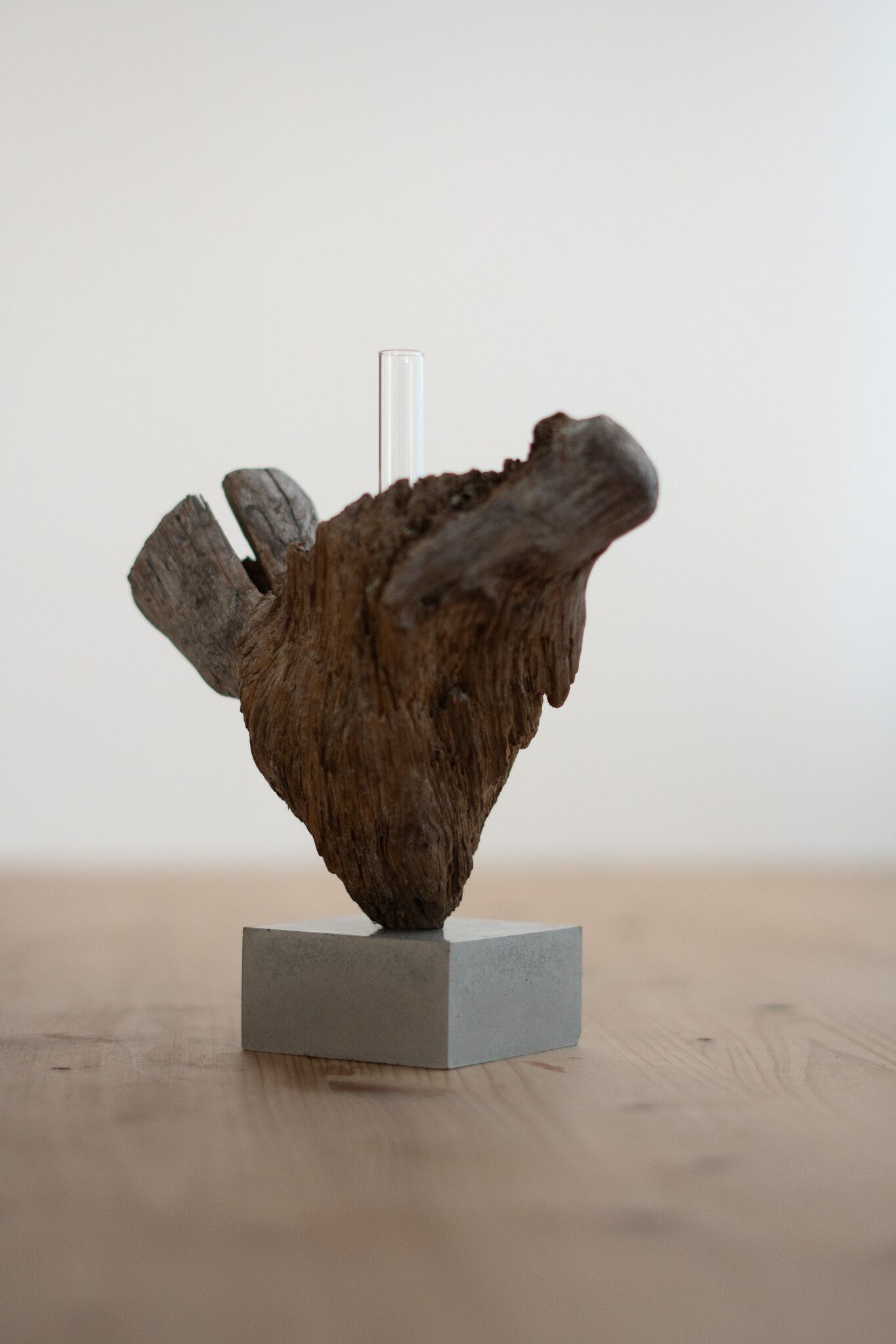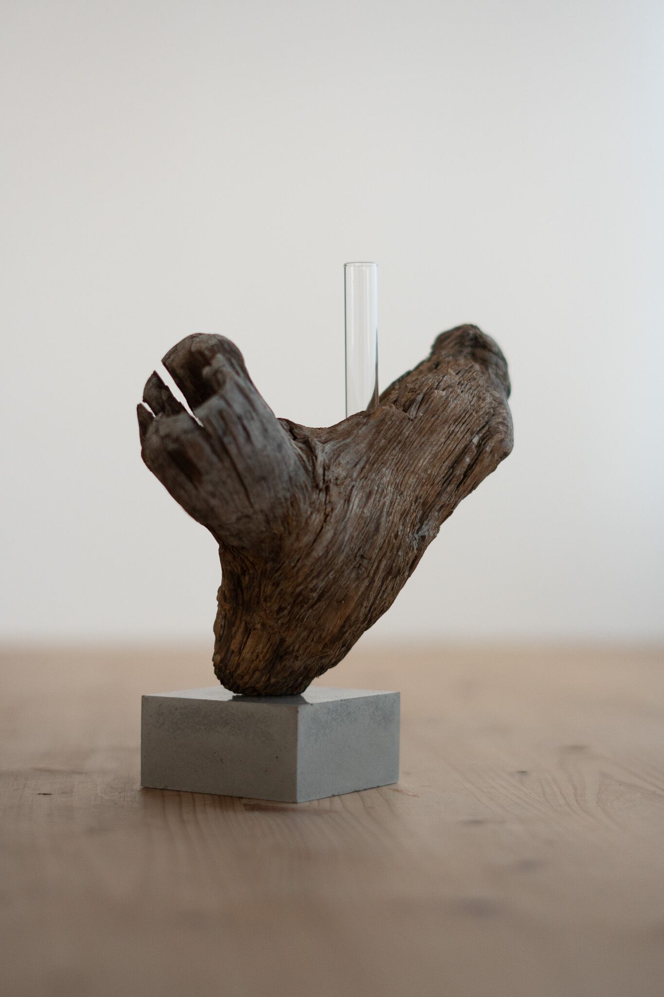 流木で作ったサスティナブルな一点ものの一輪挿しです。