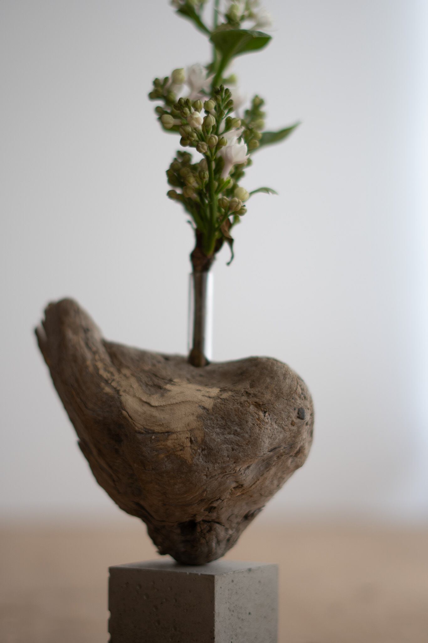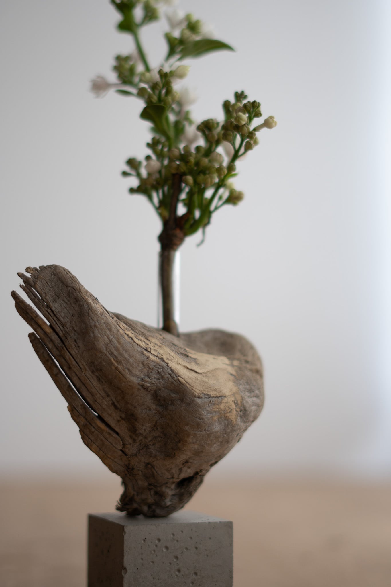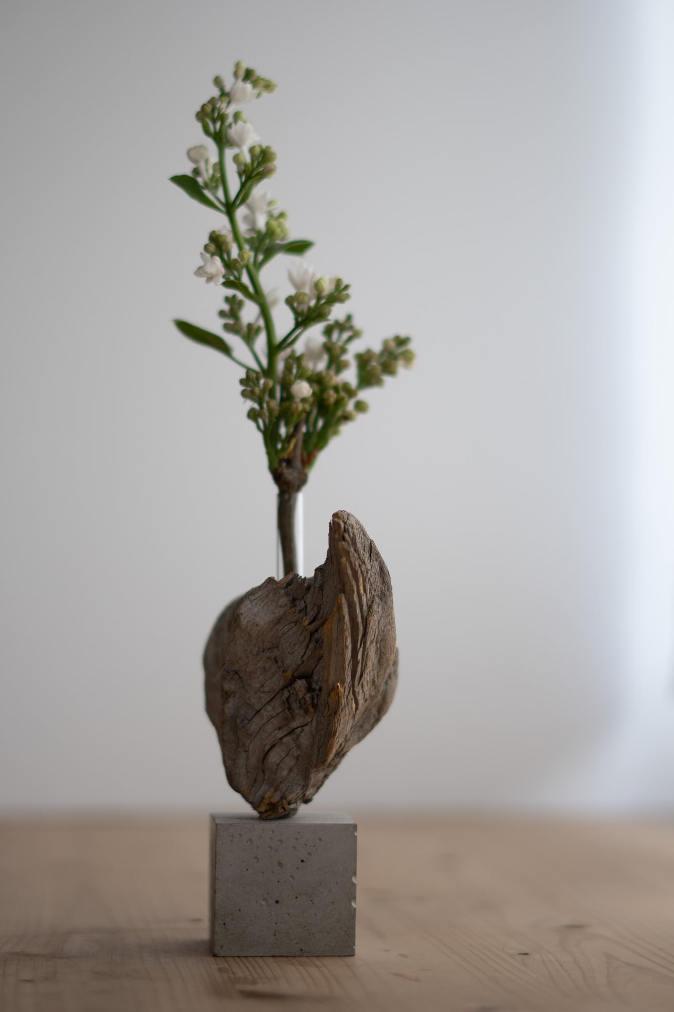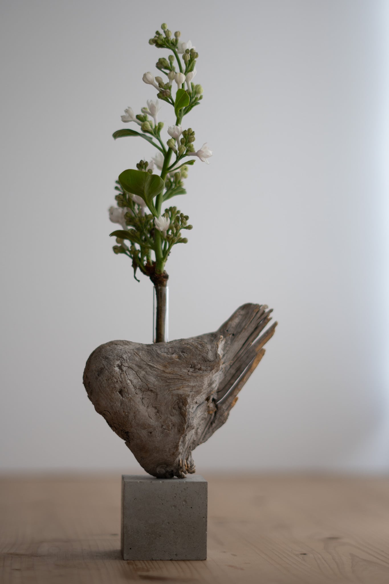 流木で作ったサスティナブルな一点ものの一輪挿しです。
