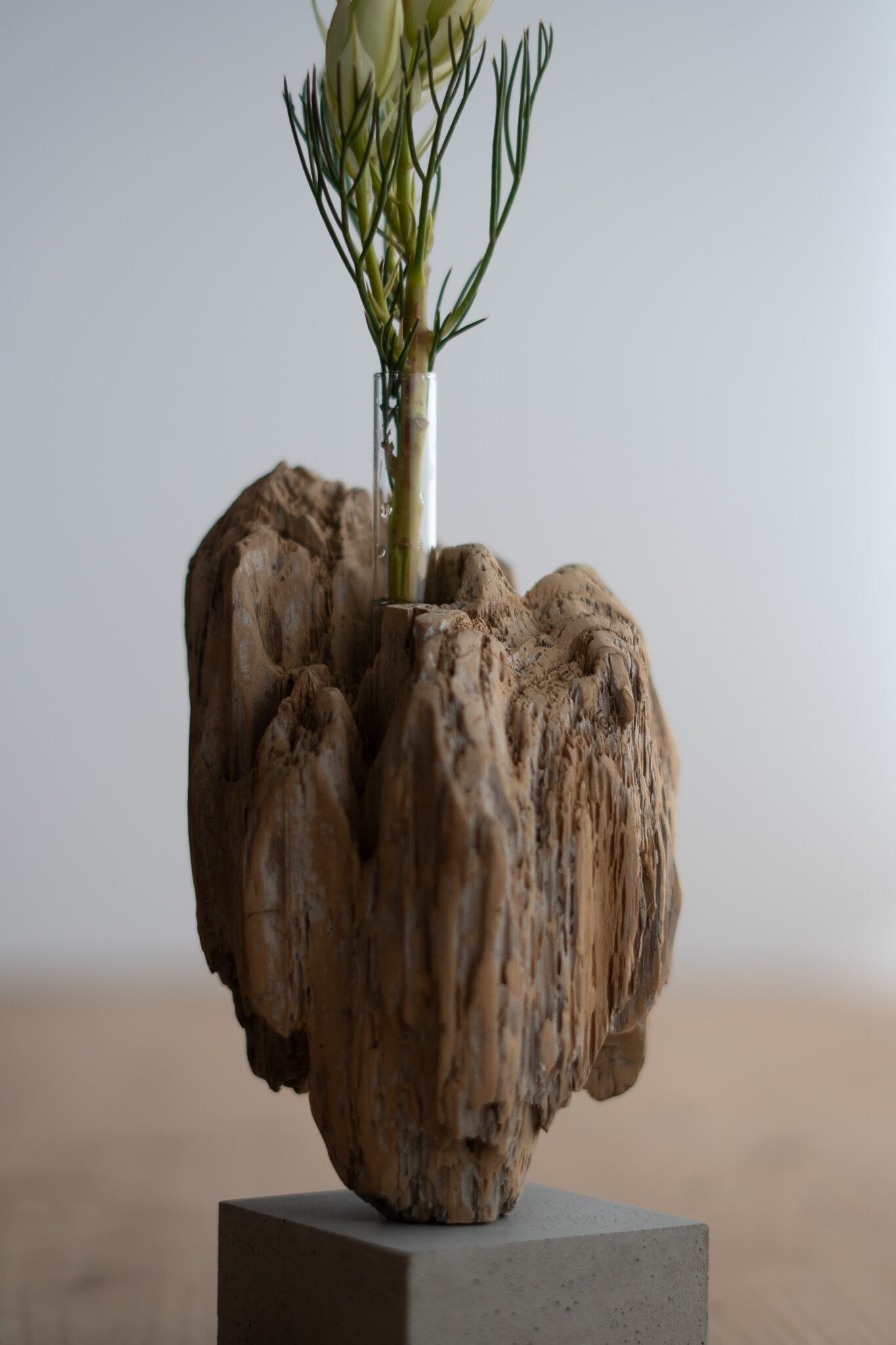 流木で作ったサスティナブルな一点ものの一輪挿しです。