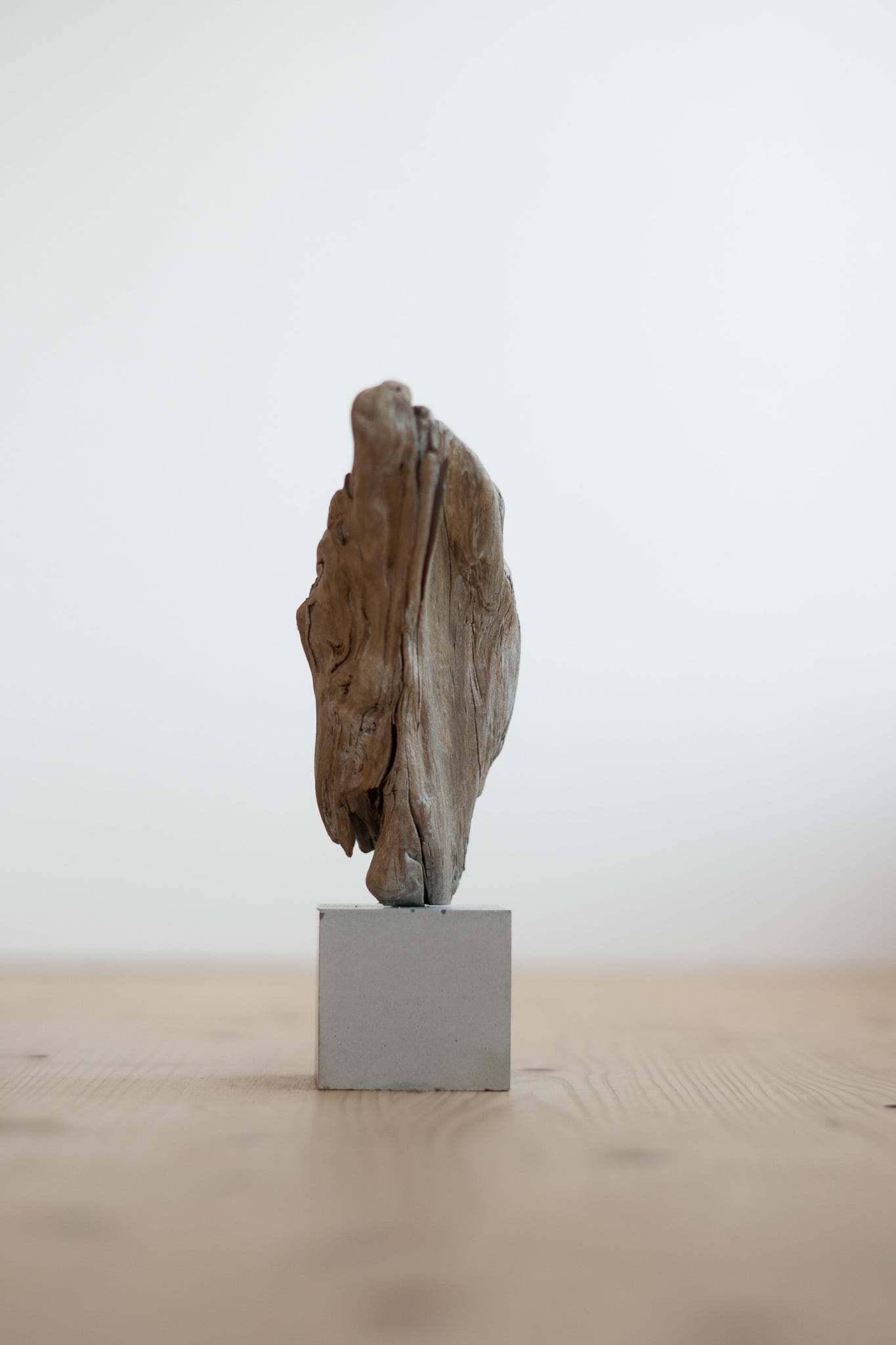 流木本来の形や表皮を損なわないよう最低限のサンディングを施して作品にしました。