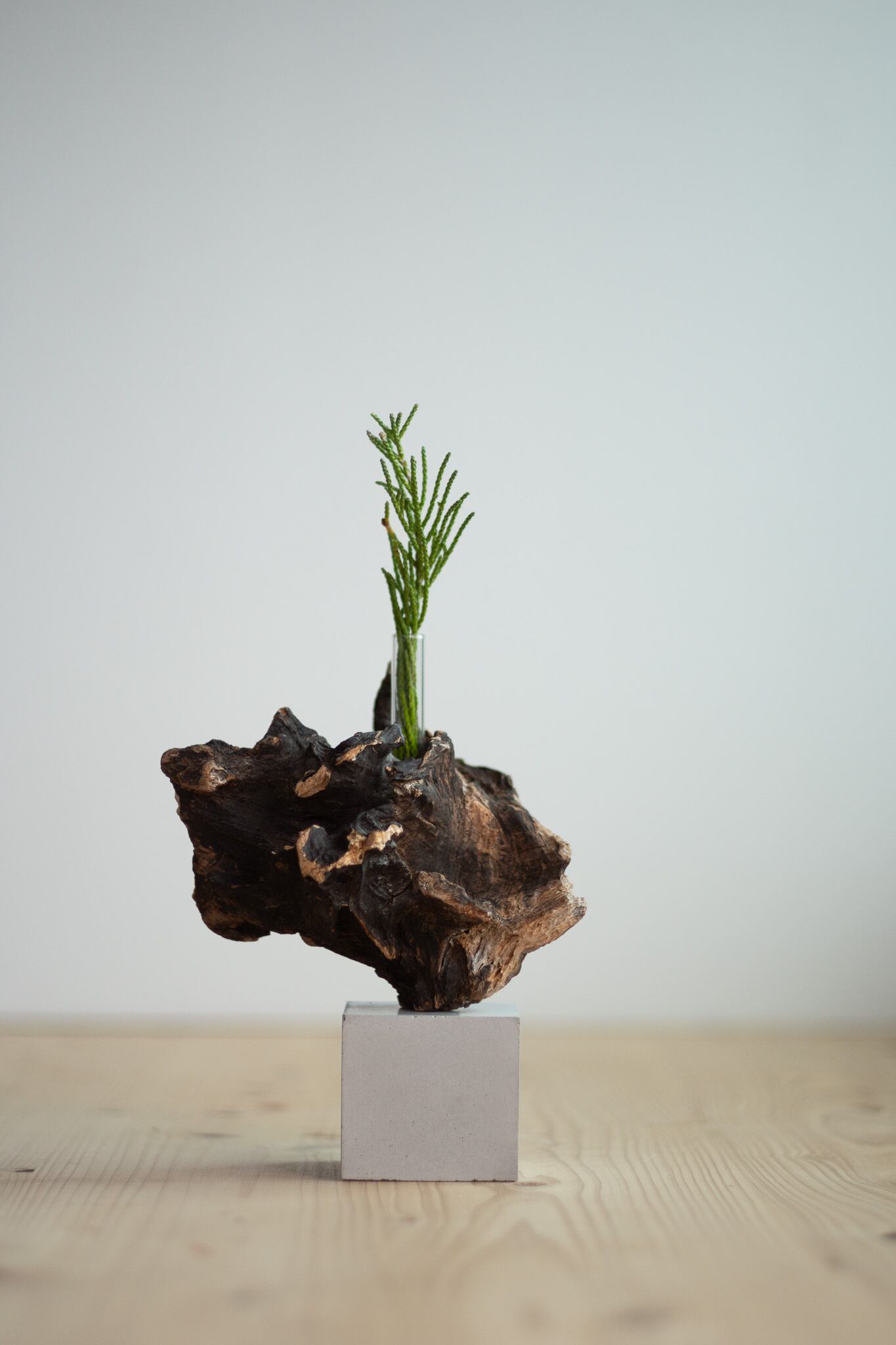 流木で作ったサスティナブルな一点ものの一輪挿しです。