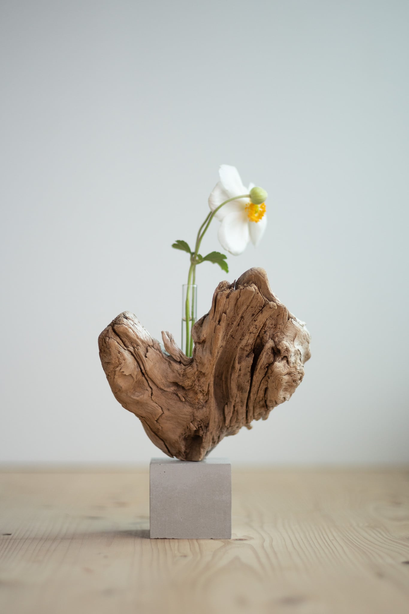 流木で作ったサスティナブルな一点ものの一輪挿しです。