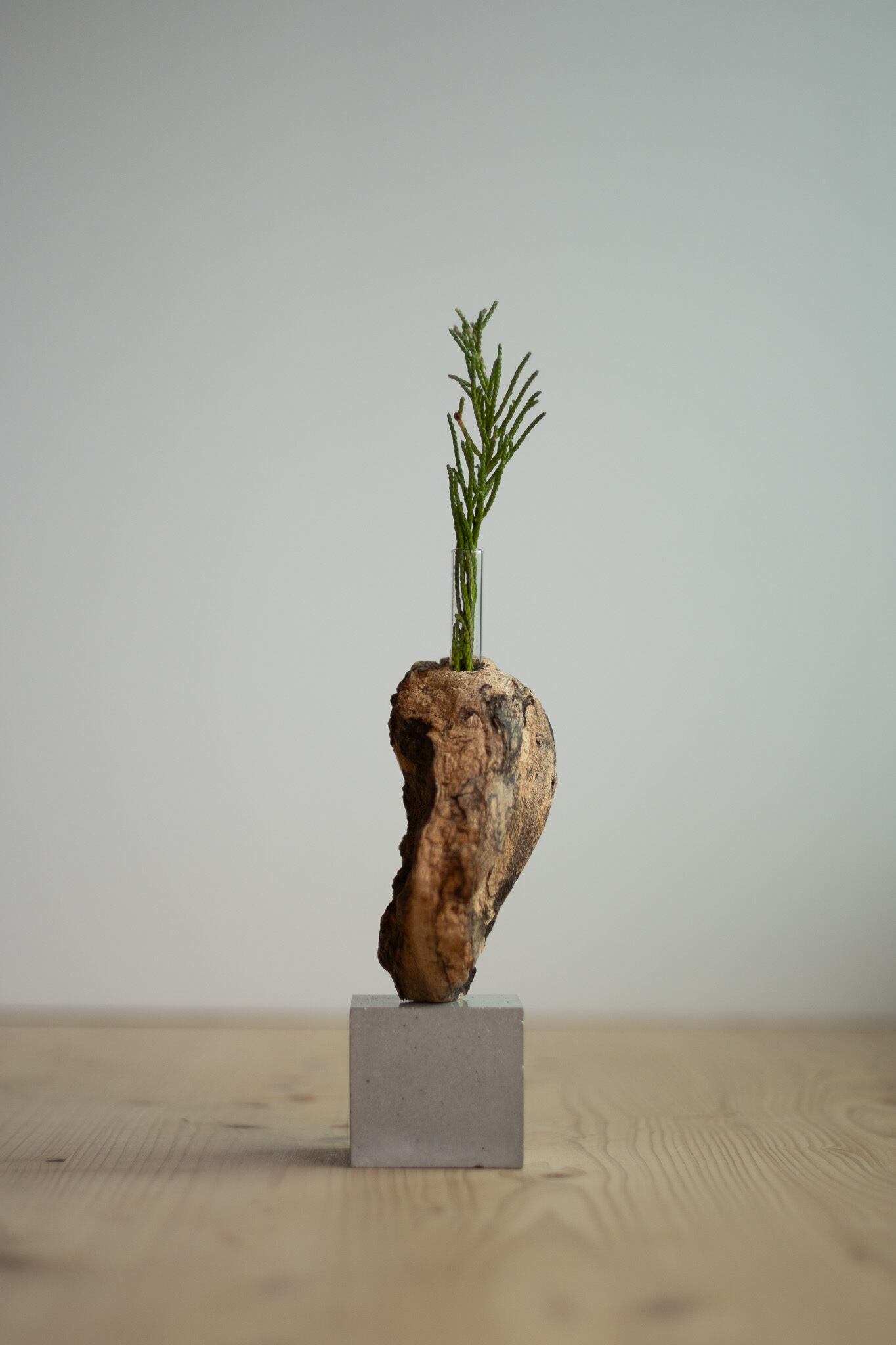 流木で作ったサスティナブルな一点ものの一輪挿しです。