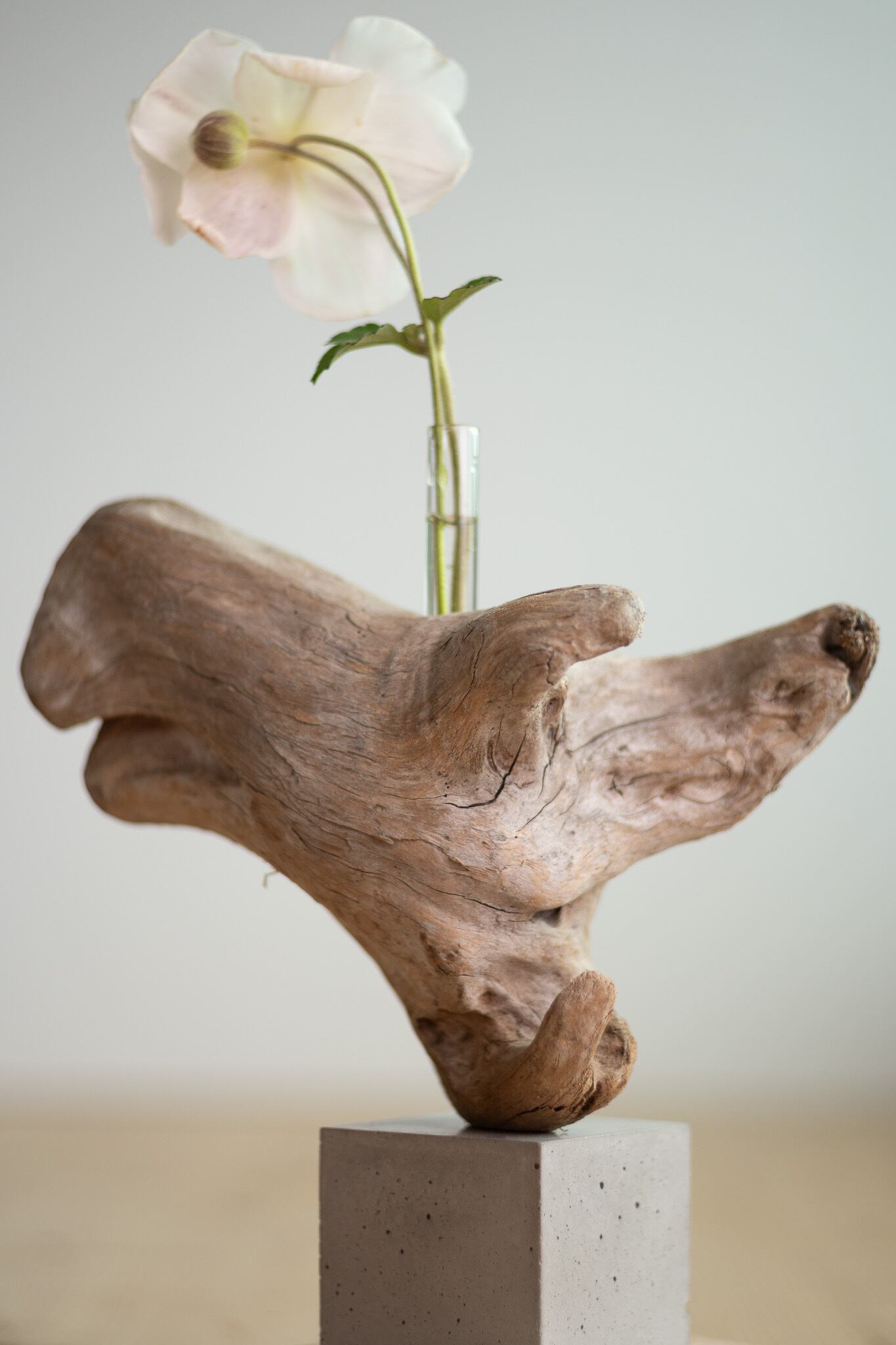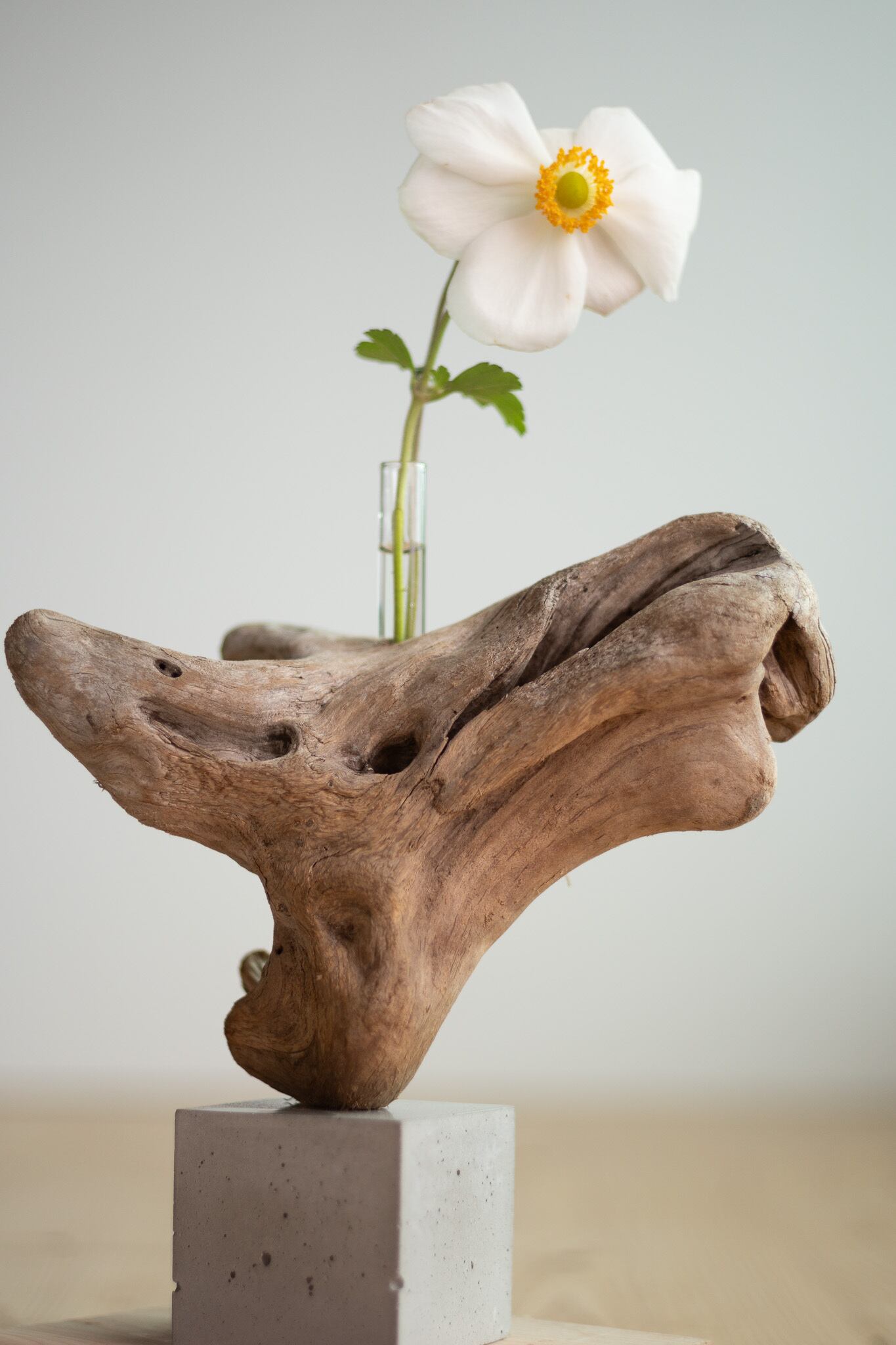 流木で作ったサスティナブルな一点ものの一輪挿しです。