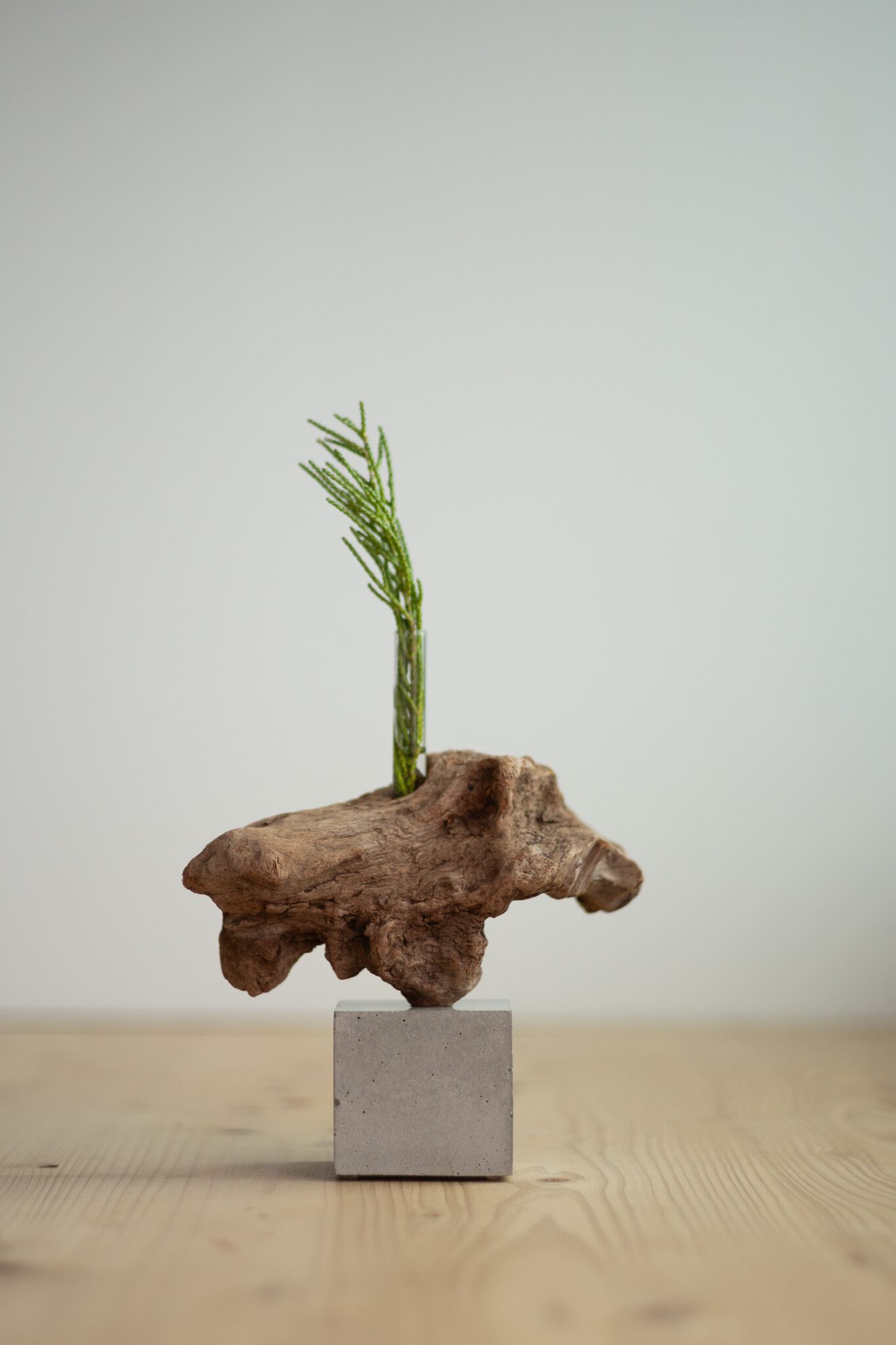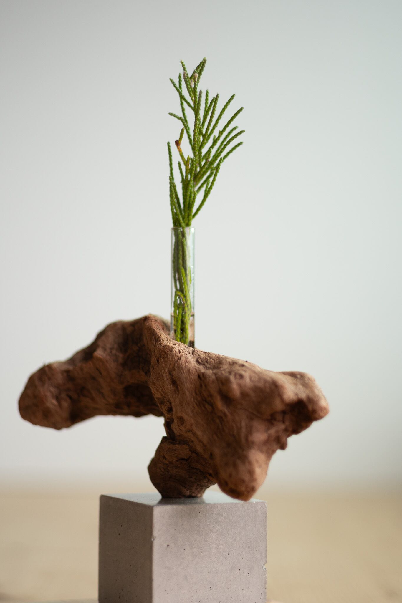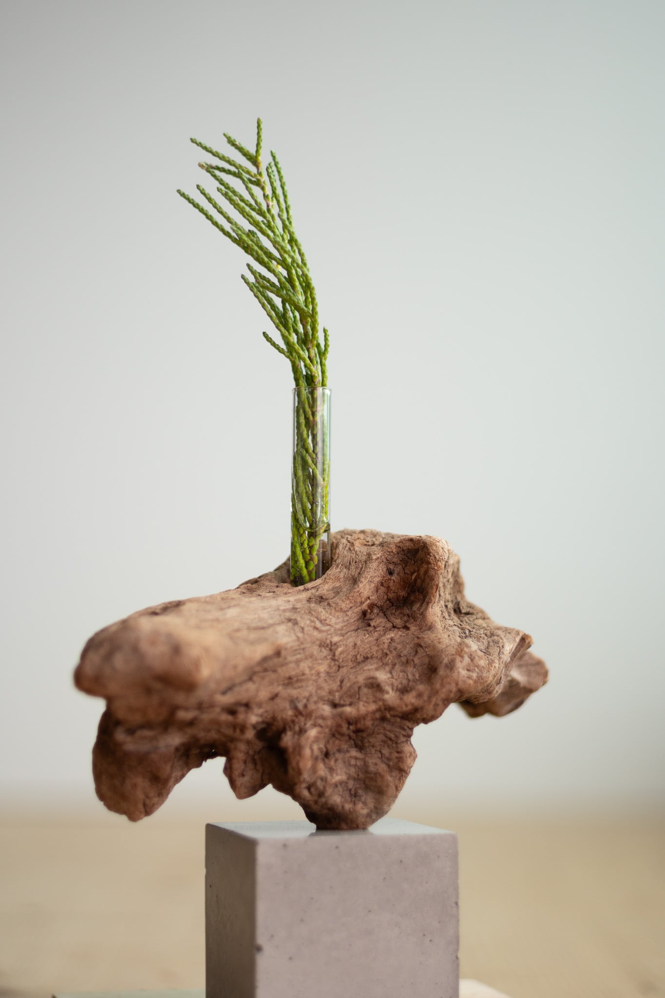 流木で作ったサスティナブルな一点ものの一輪挿しです。