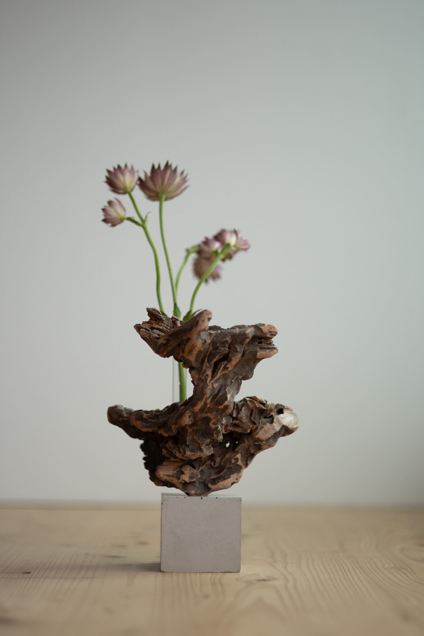 流木本来の存在感があるため、生けるお花をとても引き立ててくれます。
