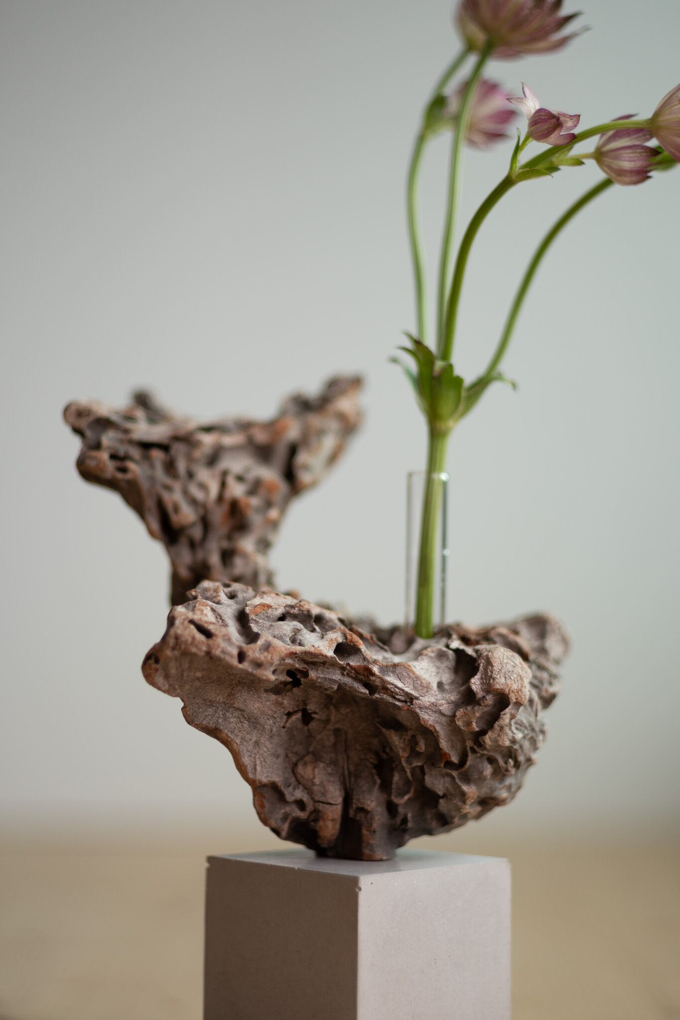流木で作ったサスティナブルな一点ものの一輪挿しです。