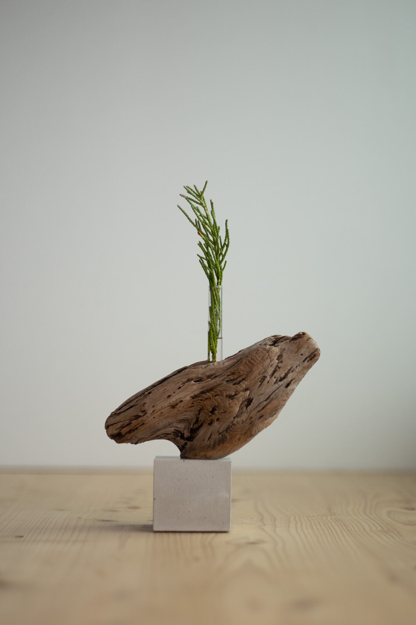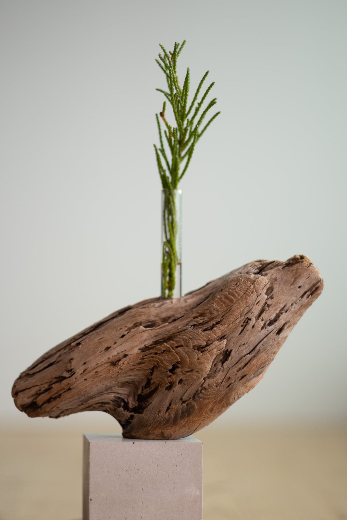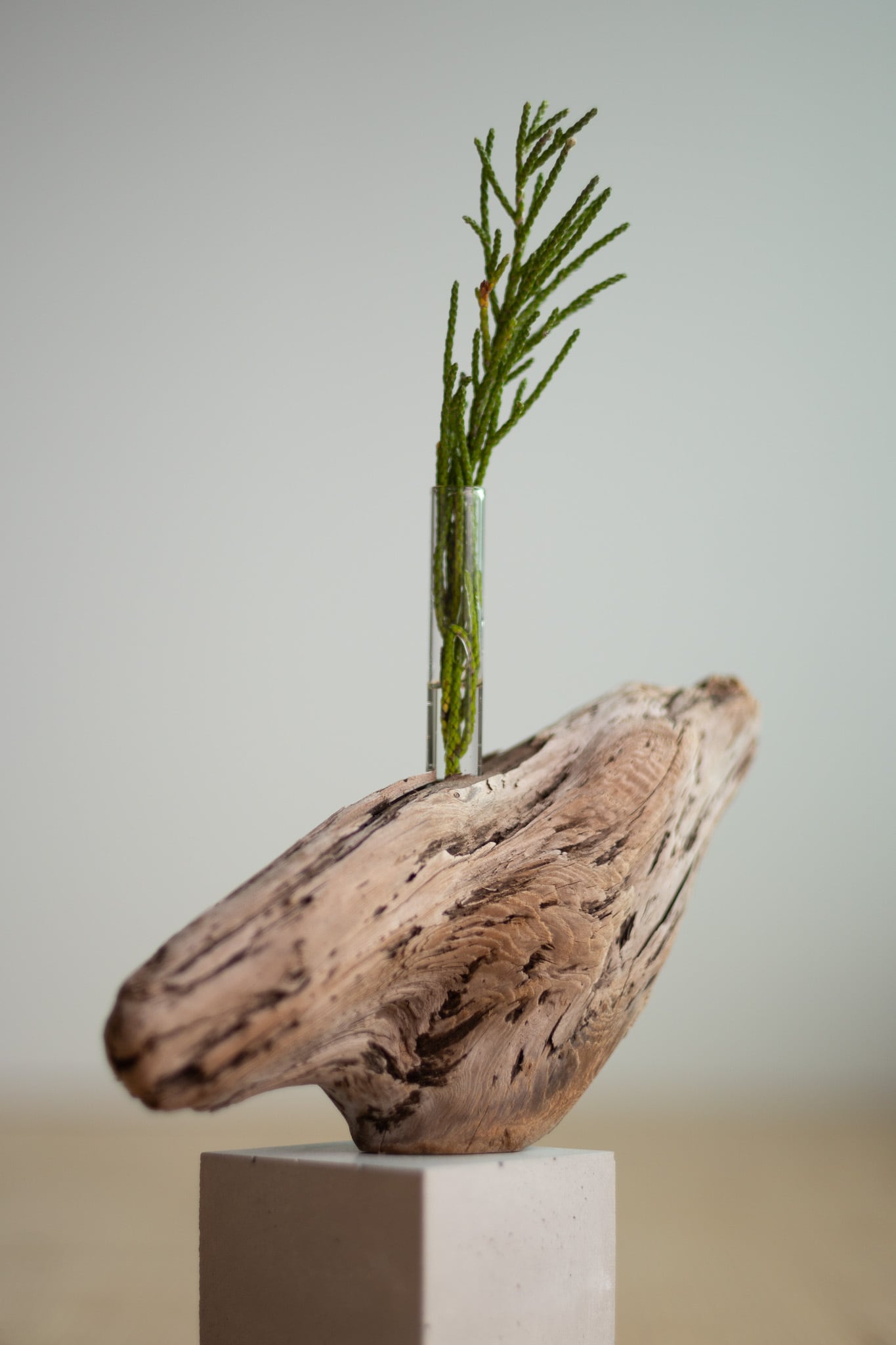 流木で作ったサスティナブルな一点ものの一輪挿しです。