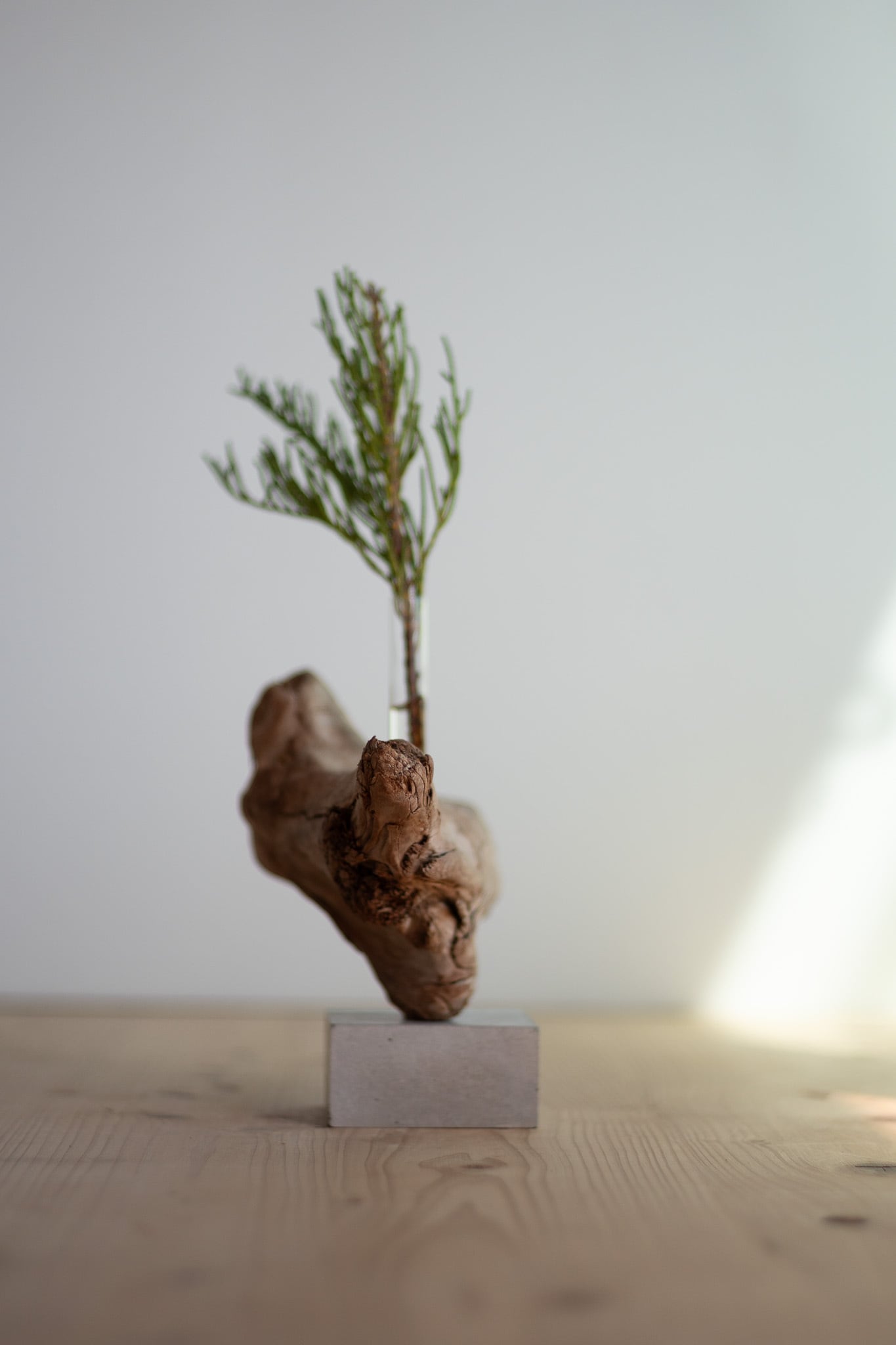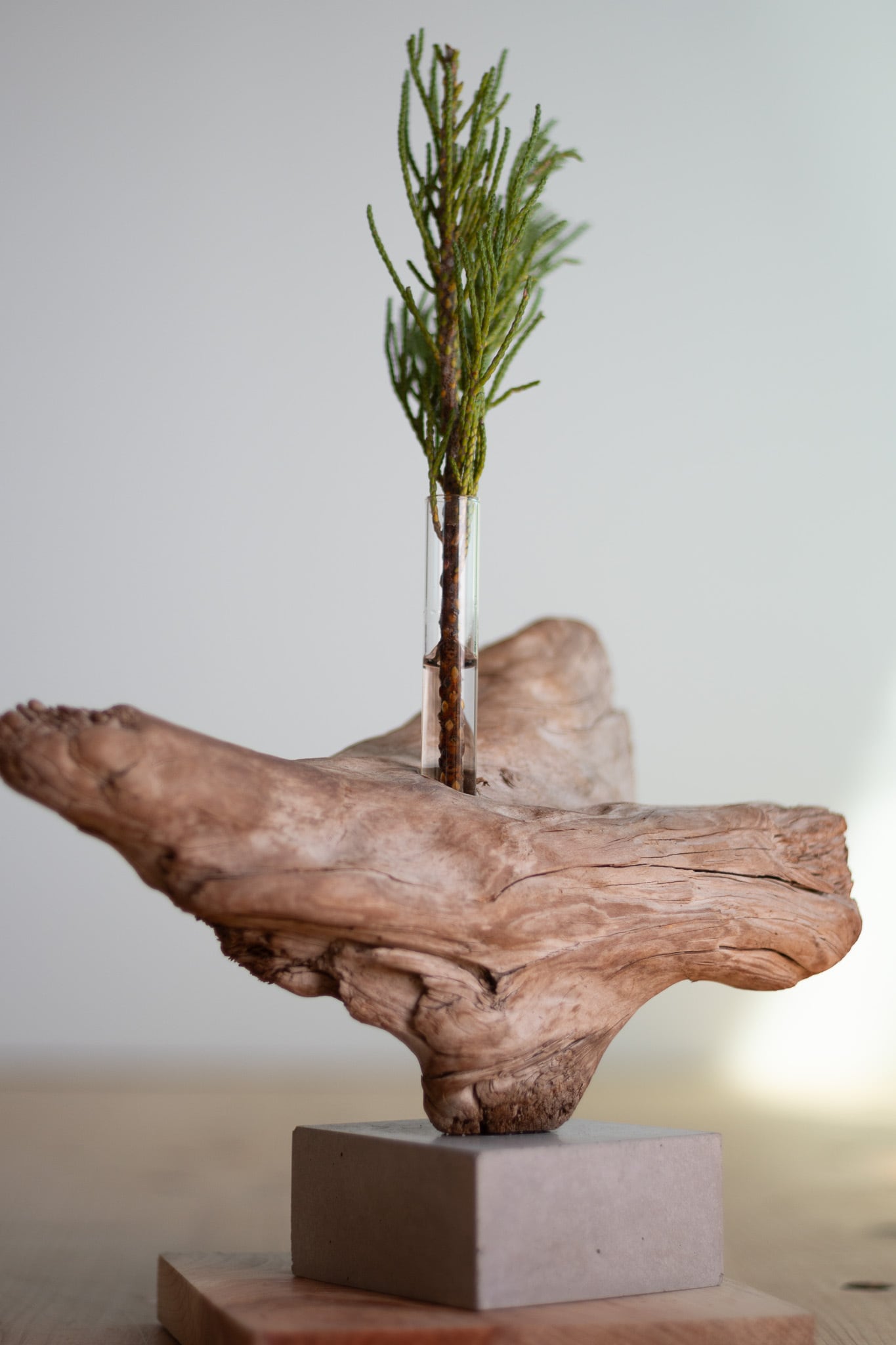 流木で作ったサスティナブルな一点ものの一輪挿しです。