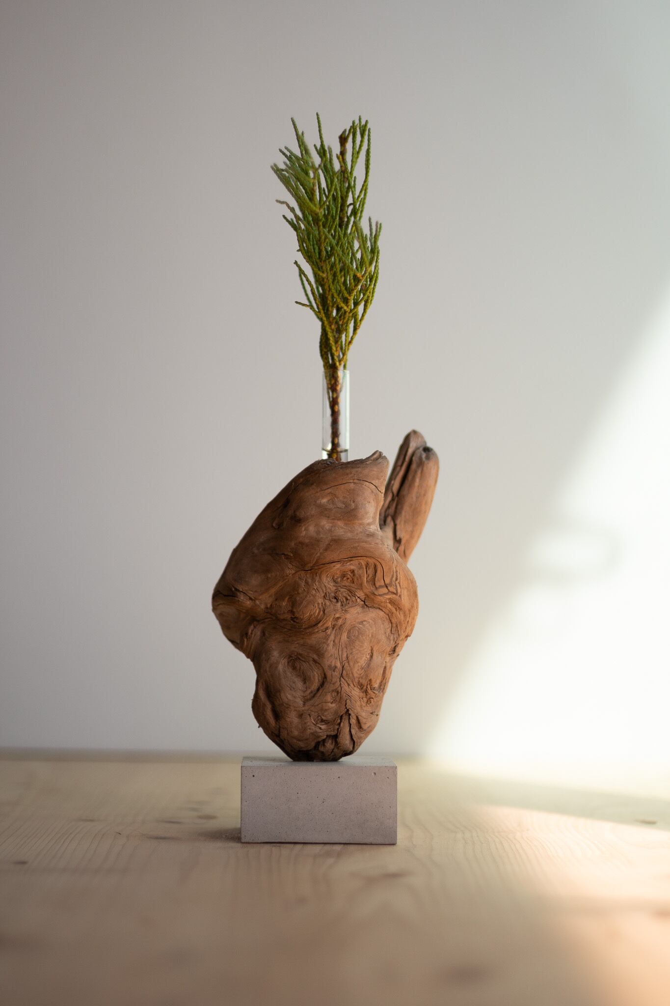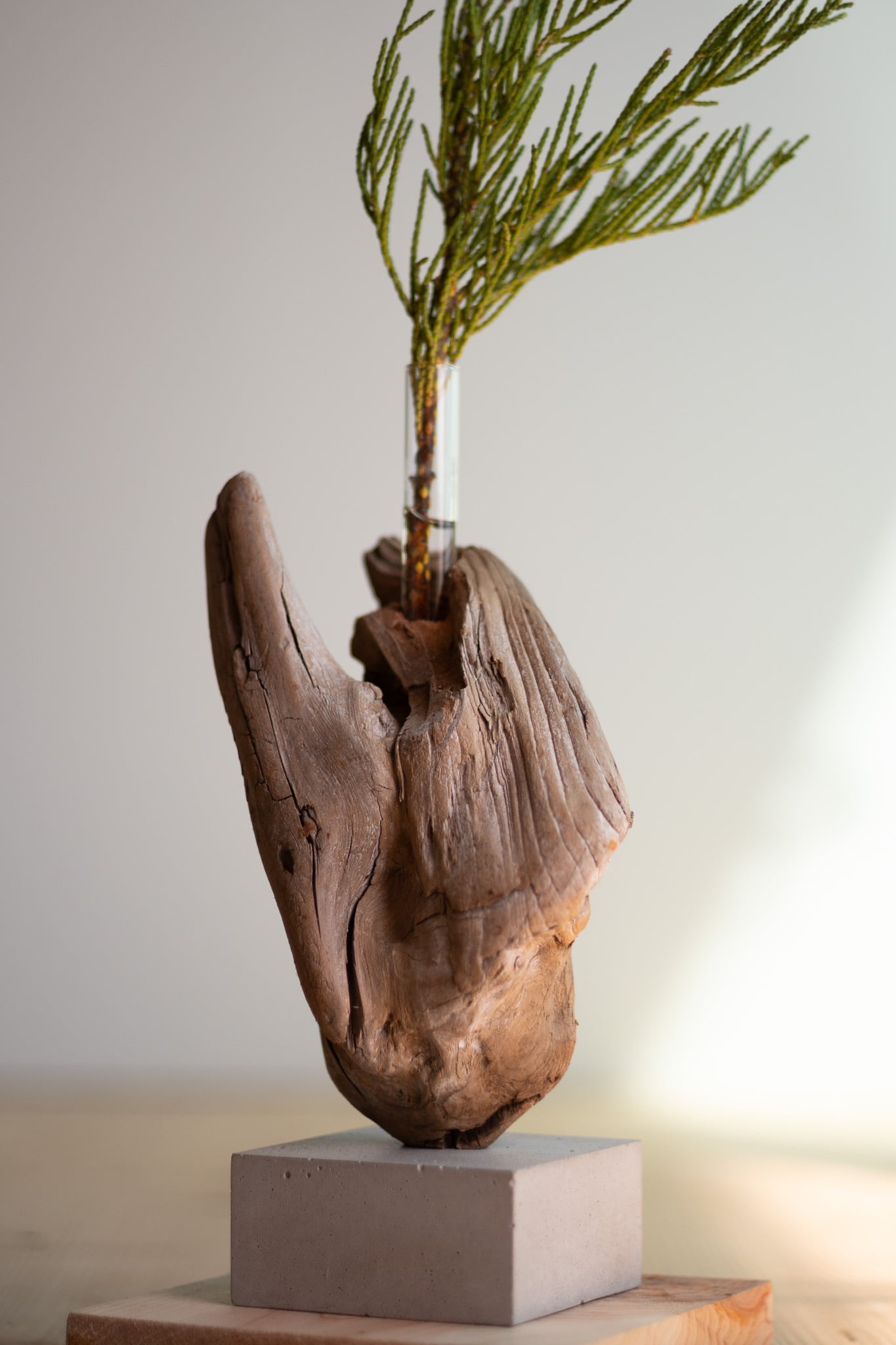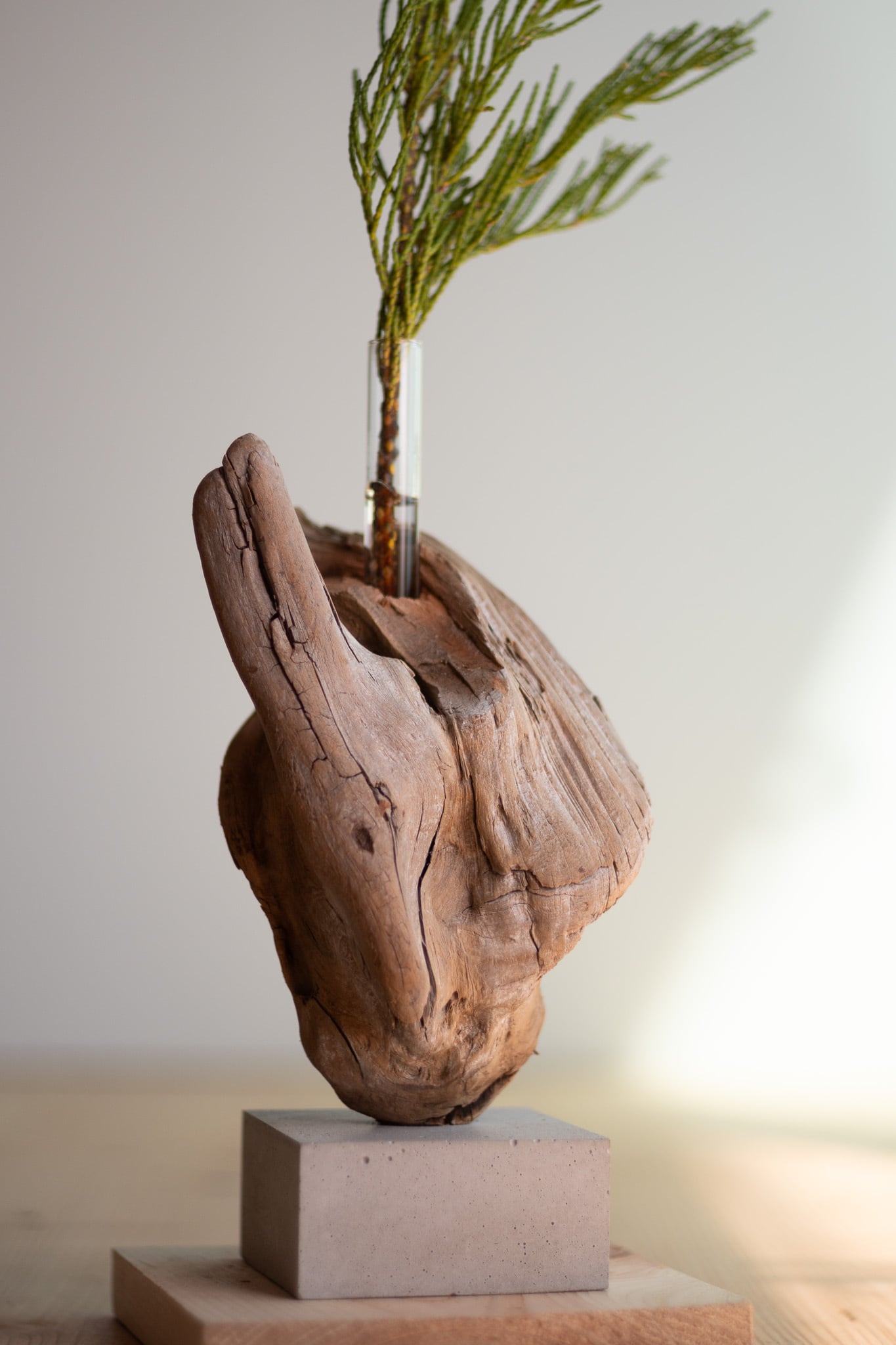 流木で作ったサスティナブルな一点ものの一輪挿しです。