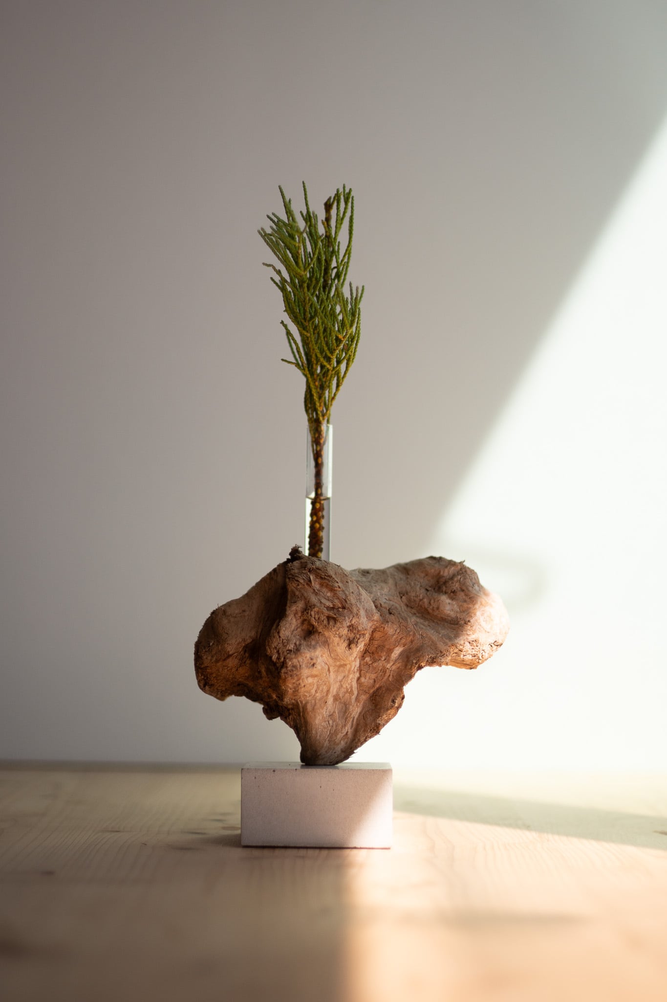 流木で作ったサスティナブルな一点ものの一輪挿しです。