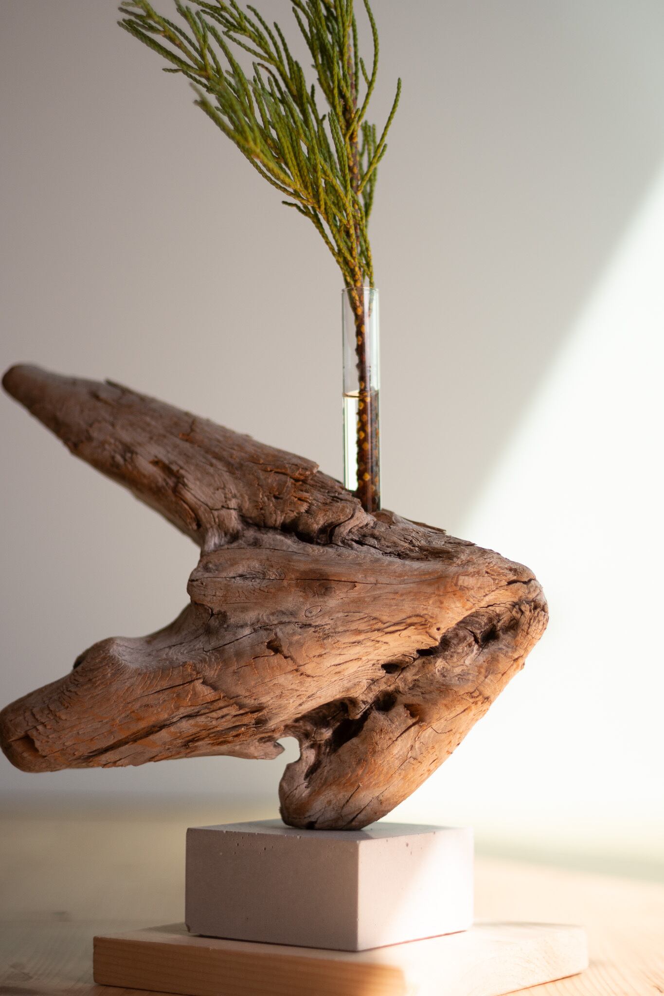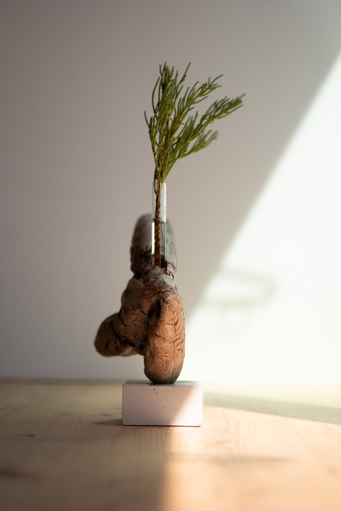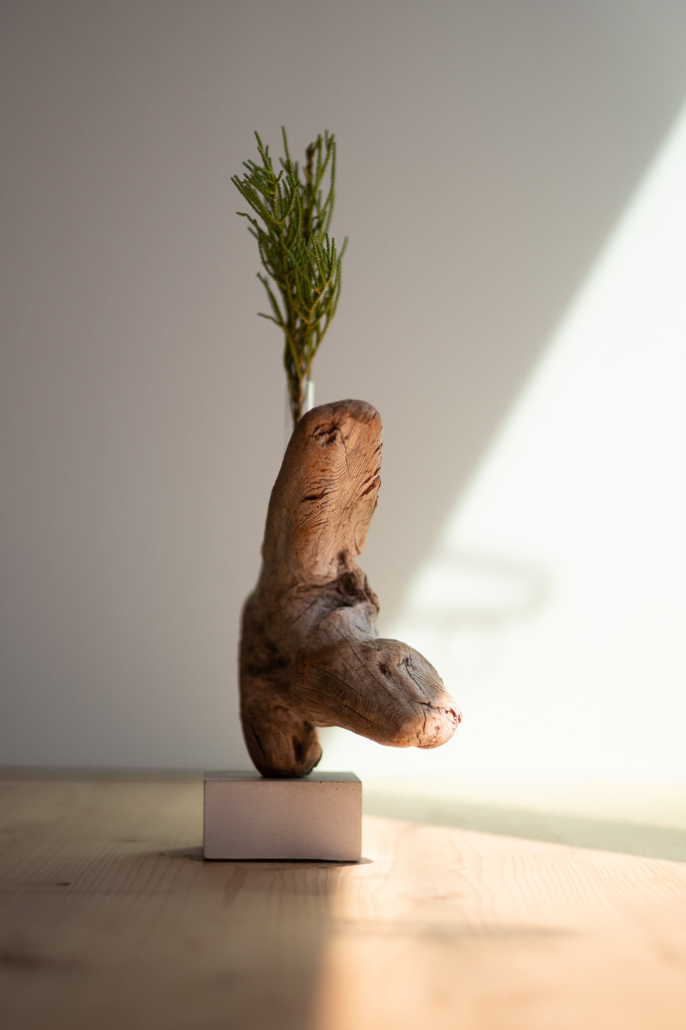 流木で作ったサスティナブルな一点ものの一輪挿しです。