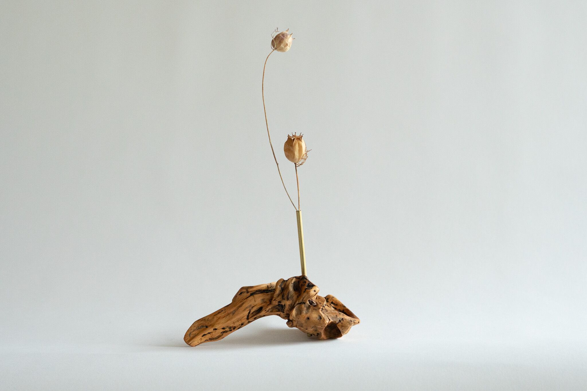 流木本来の存在感があるため、生けるお花をとても引き立ててくれます。