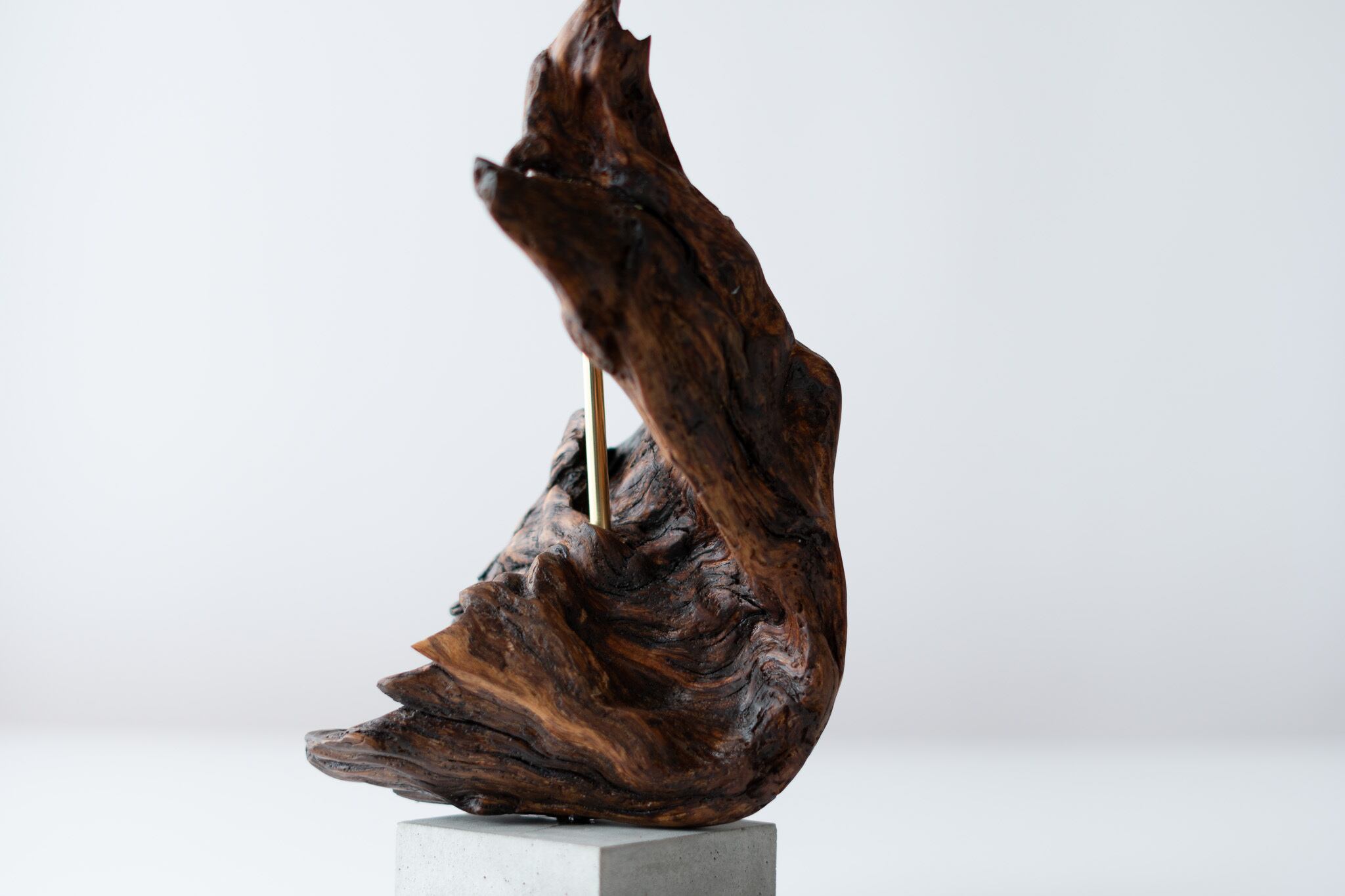 いろんな角度から流木を楽しむことができるよう、まるで標本のような作品に仕上げています。