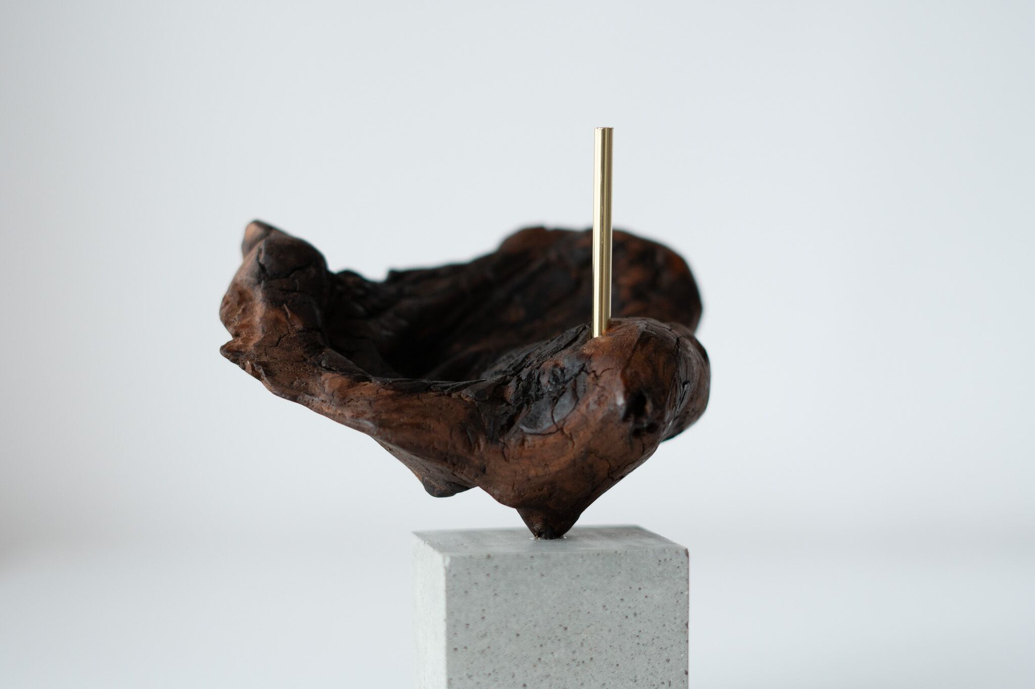 セメントの台座に真鍮棒で