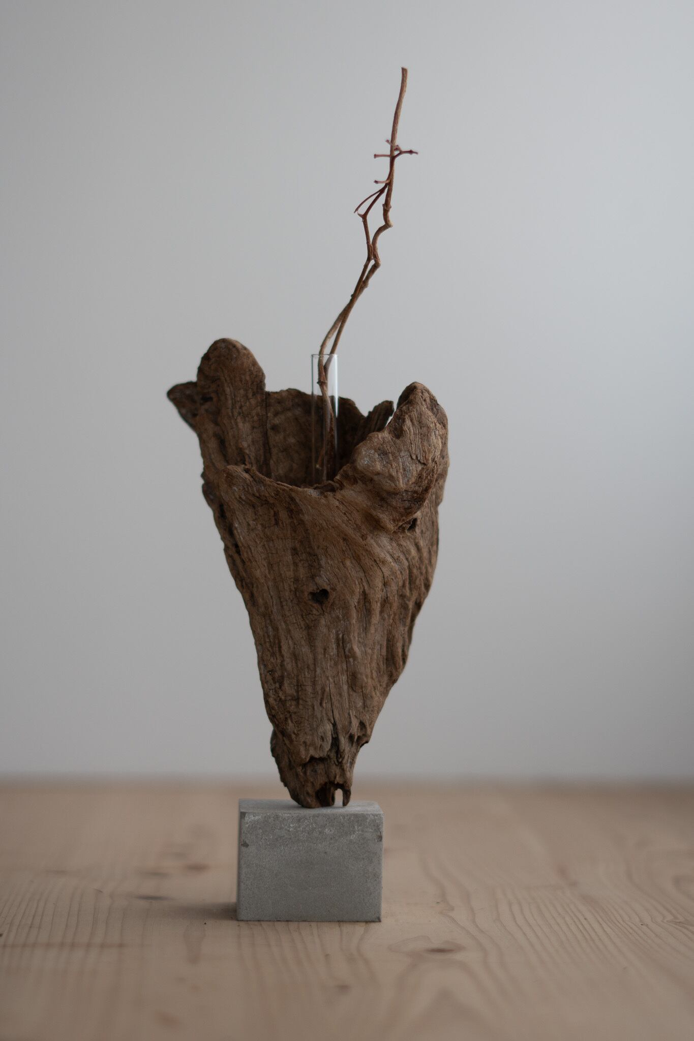 流木で作ったサスティナブルな一点ものの一輪挿しです。
