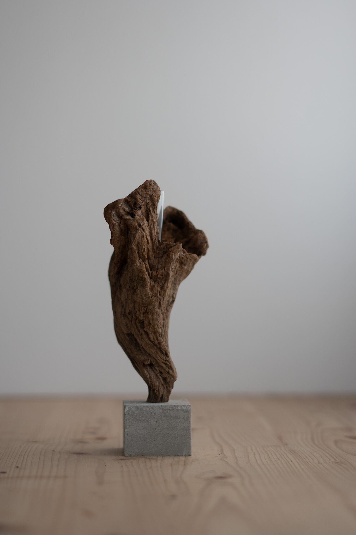 流木本来の形や表皮を損なわないよう最低限のサンディングを施して作品にしました。