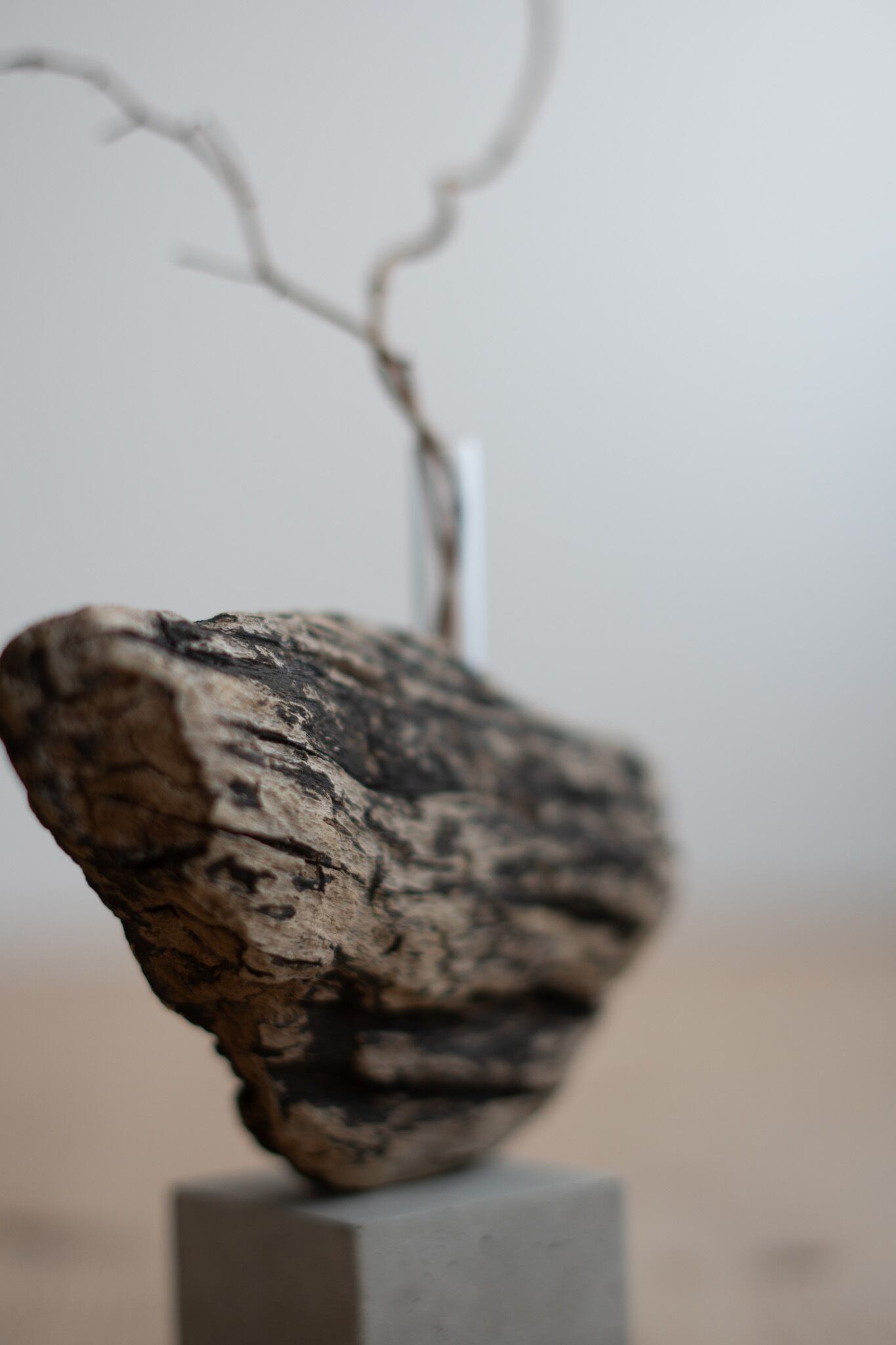 流木本来の形や表皮を損なわないよう最低限のサンディングを施して作品にしました。
