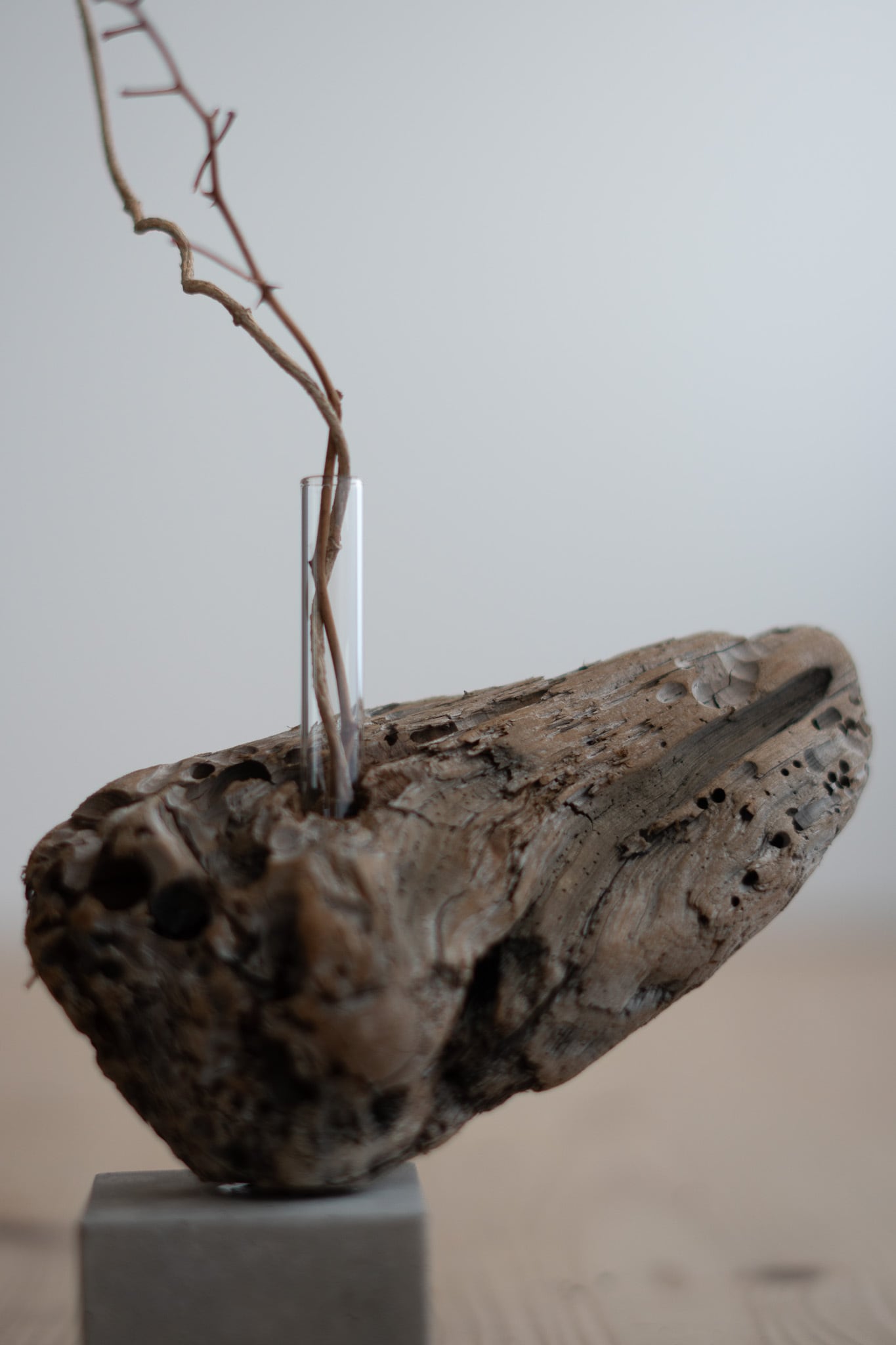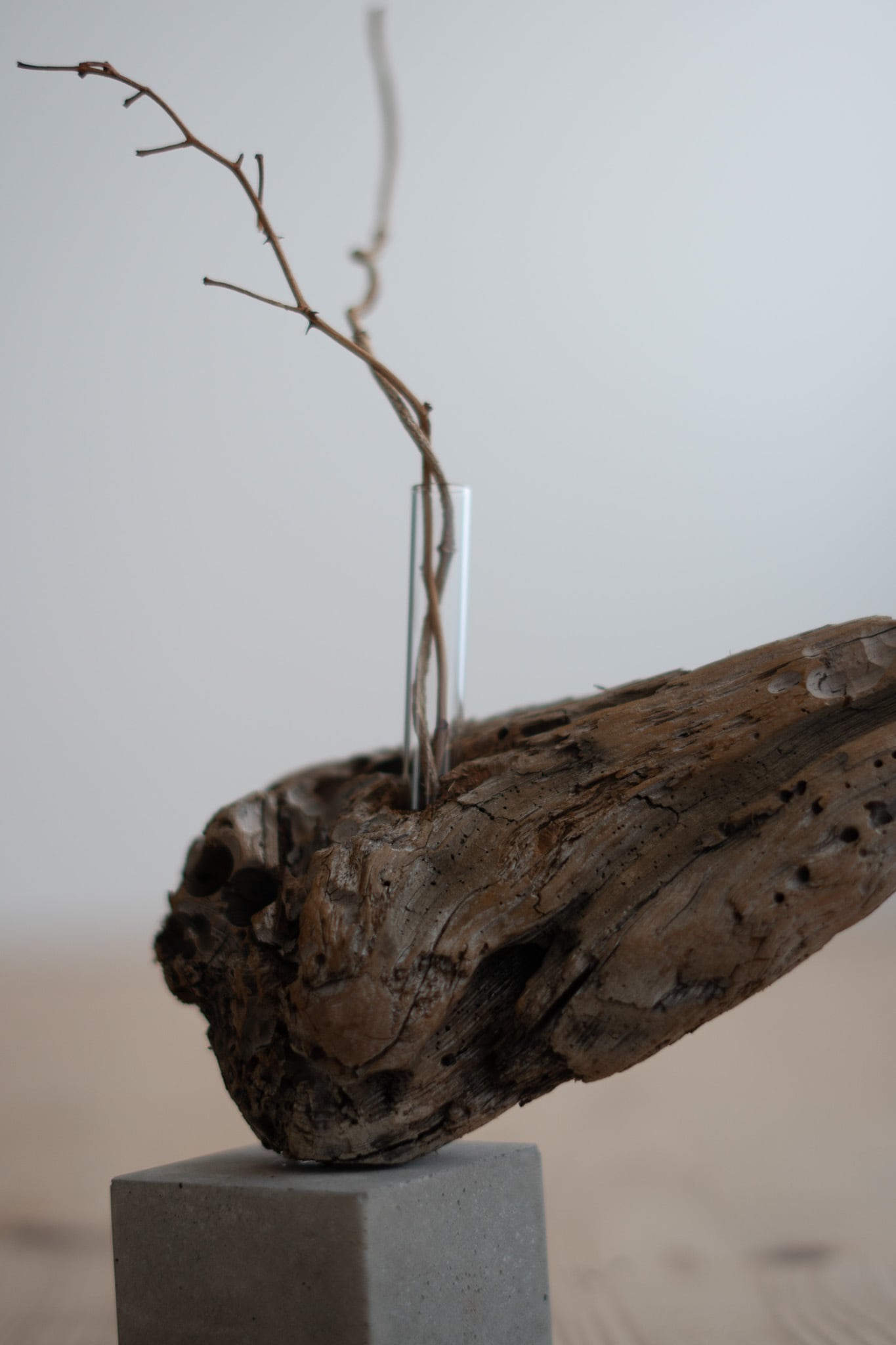 流木で作ったサスティナブルな一点ものの一輪挿しです。
