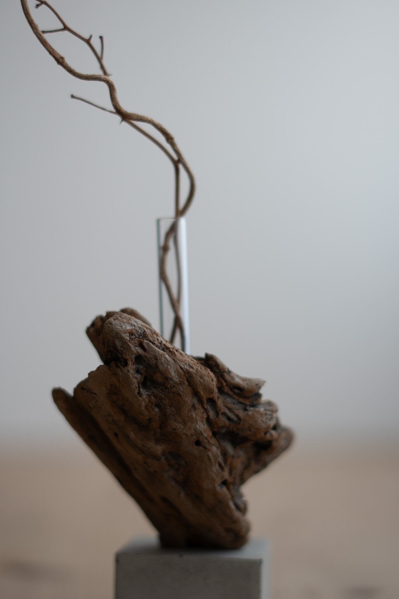 セメントに絶妙なバランスで流木が固定しています。