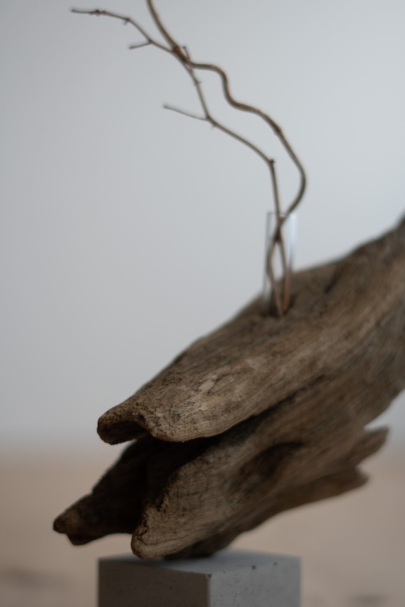 流木で作ったサスティナブルな一点ものの一輪挿しです。