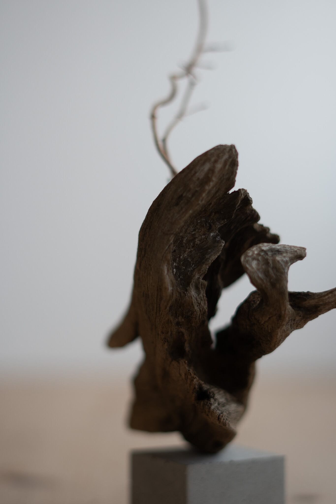 流木本来の形や表皮を損なわないよう最低限のサンディングを施して作品にしました。
