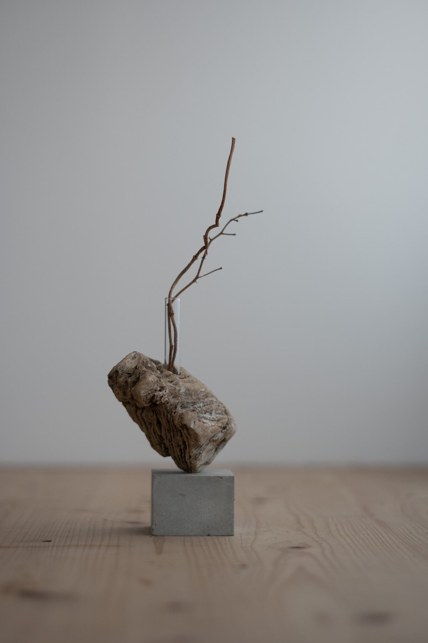 セメントに絶妙なバランスで流木が固定しています。