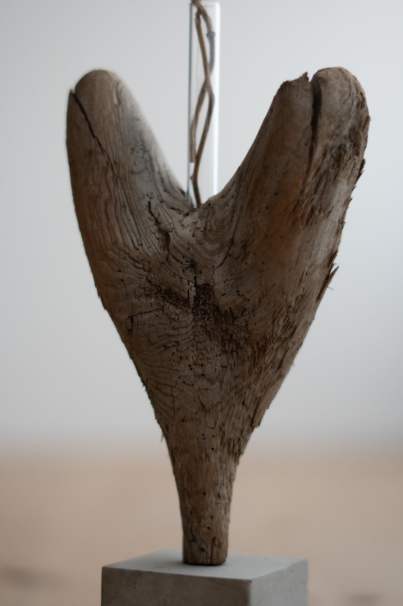 流木本来の形や表皮を損なわないよう最低限のサンディングを施して作品にしました。