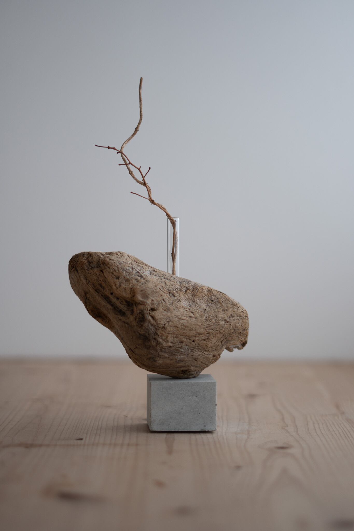 セメントに絶妙なバランスで流木が固定しています。