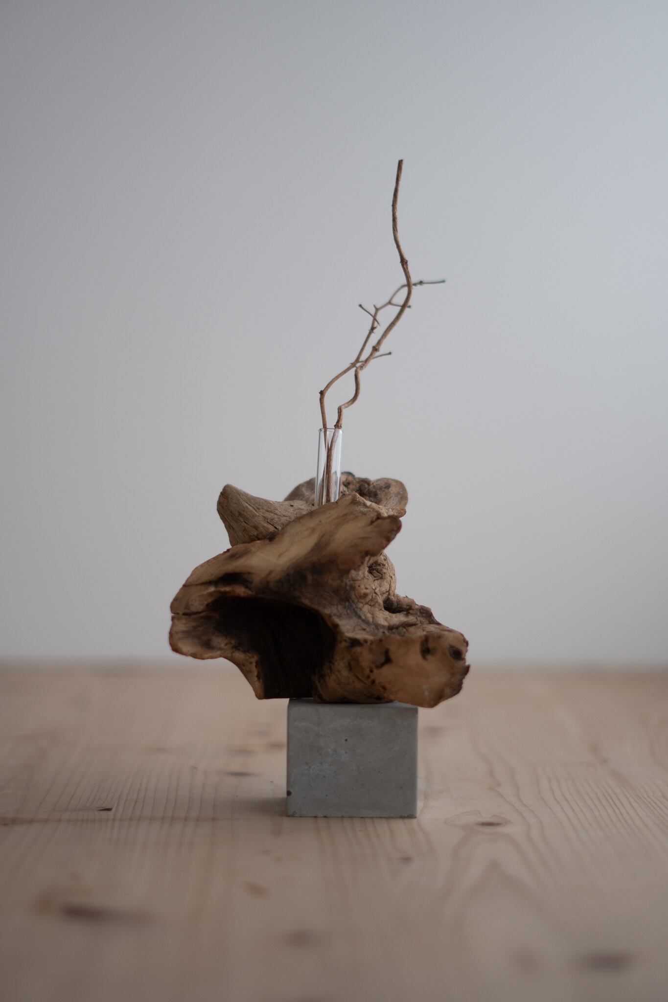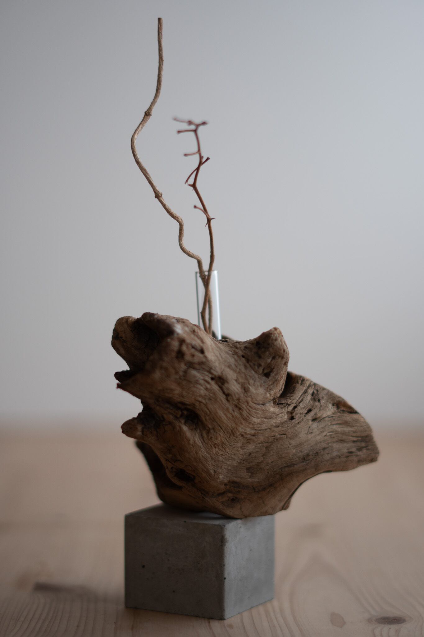 流木で作ったサスティナブルな一点ものの一輪挿しです。