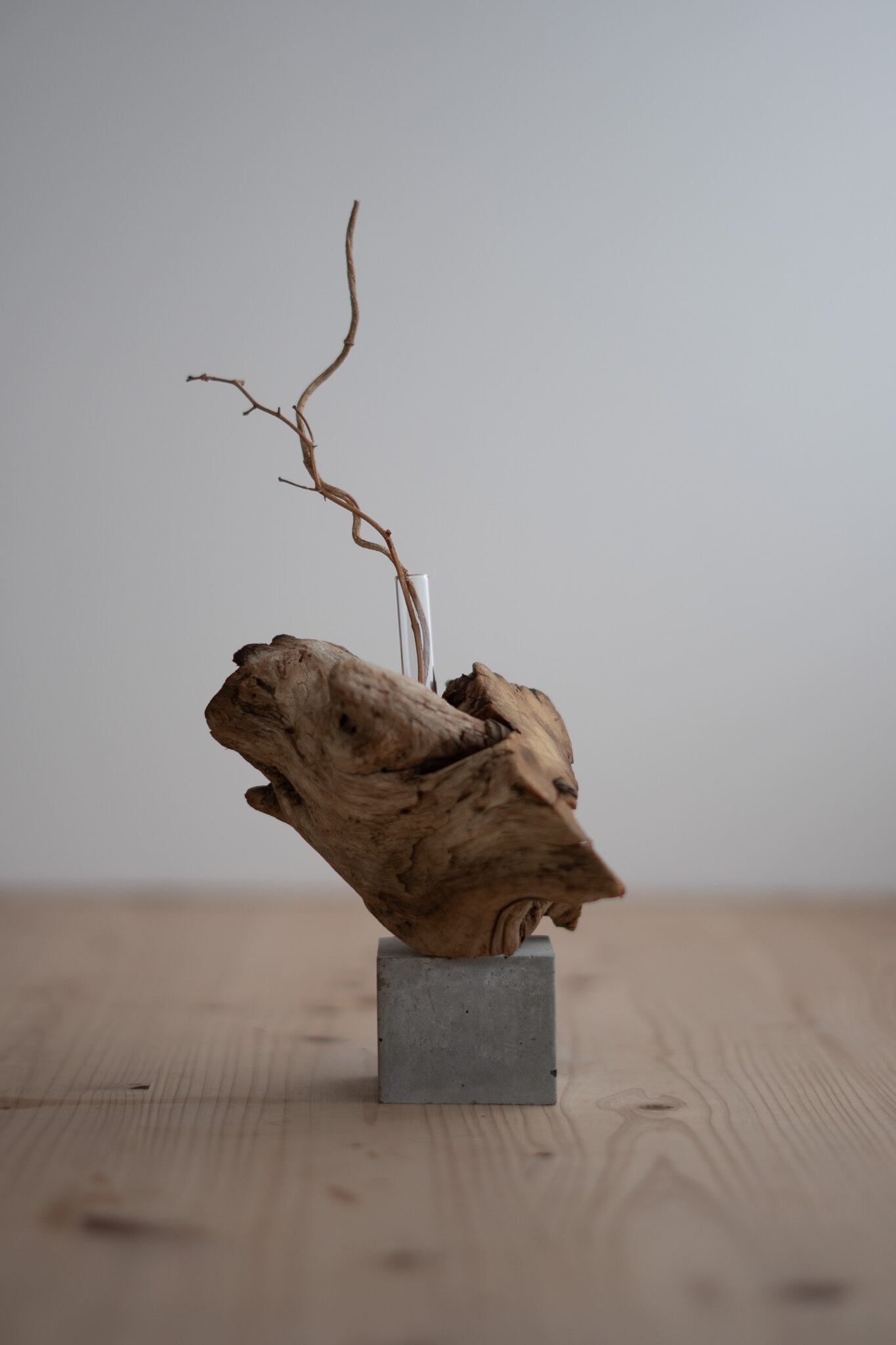 流木本来の形や表皮を損なわないよう最低限のサンディングを施して作品にしました。