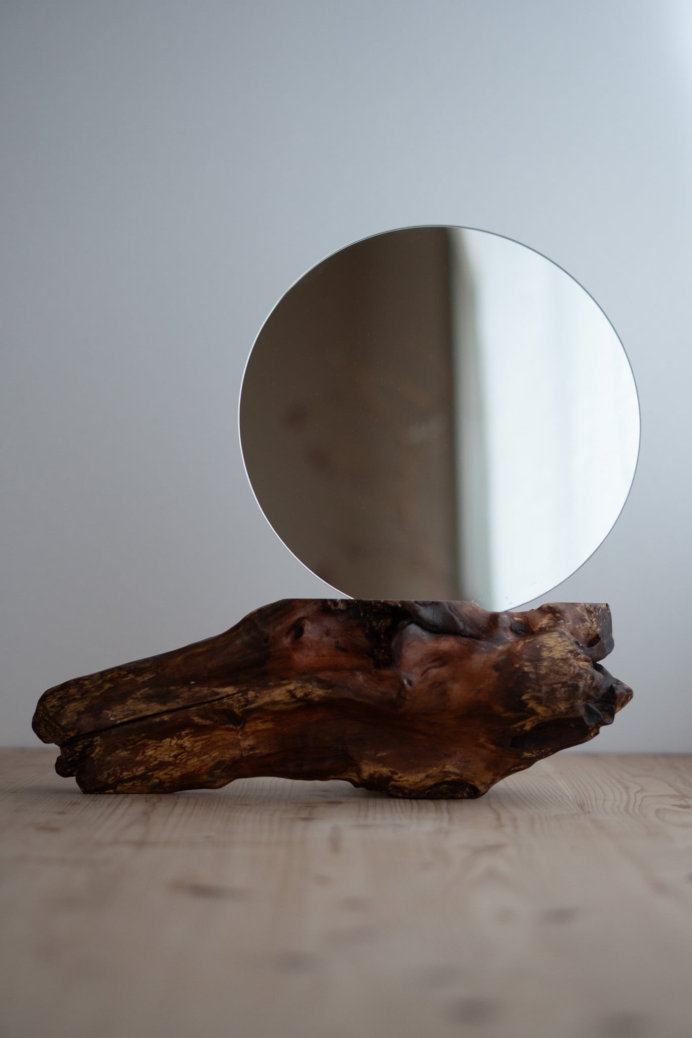 流木で作製した一点もののミラースタンドです。